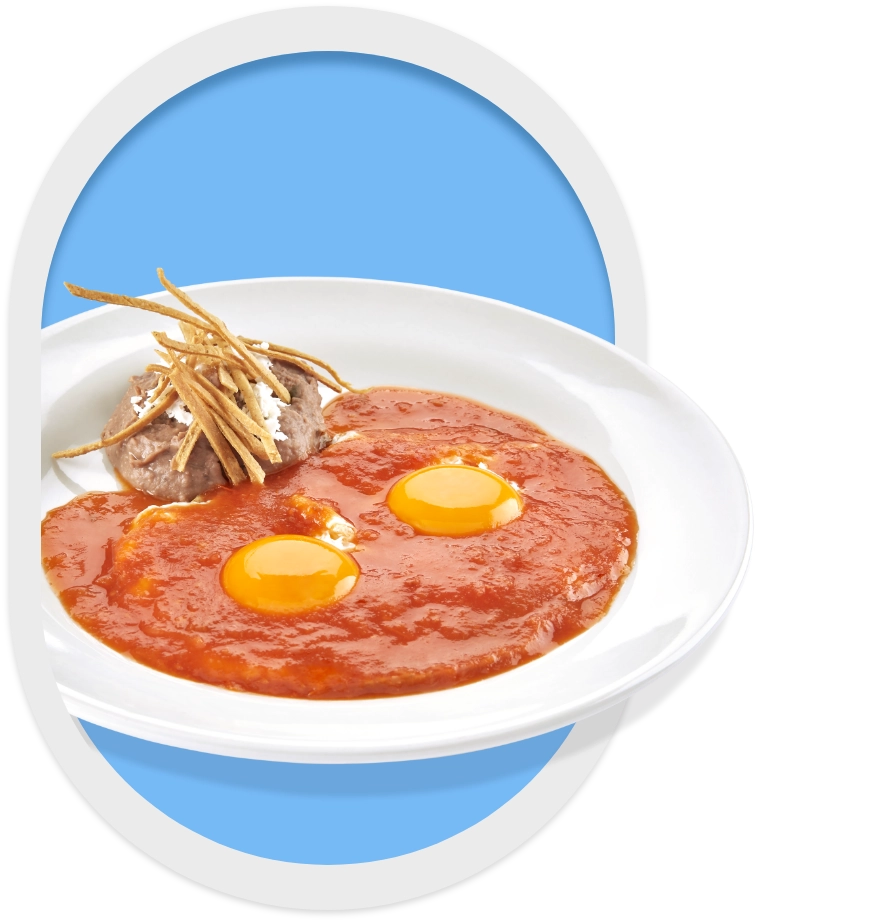 Con salsa especial verde o roja, con crema y queso rallado, acompañados de frijoles refritos